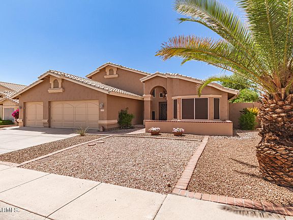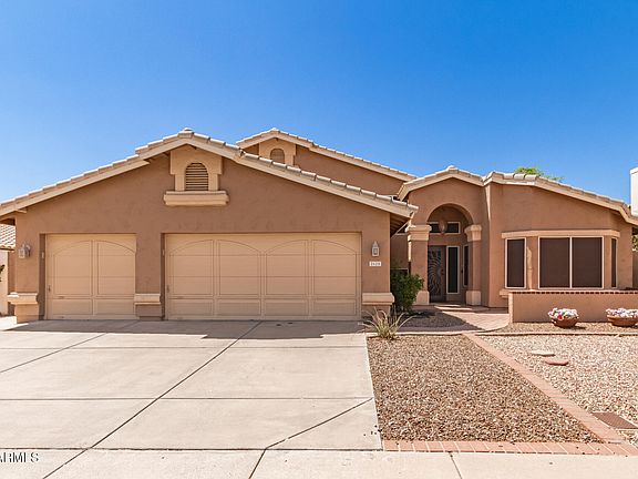 Discover this immaculate tri-level home in the sought-after Mountain Park Ranch community of Ahwatukee Foothills, perfectly situated on a family-friendly cul-de-sac street with incredible mountain views. Offering 5 spacious bedrooms and 3 full baths, this residence features vaulted ceilings, a sunken family room with wet bar, beautiful real wood flooring and elegant details like plantation shutters and wainscoting at entrance/Foyer. (Carpet free home) The upgraded home boasts a newer roof (2021), TWO new Trane HVAC units (2023), new water heater (2024), newer water softener (2021), and fresh exterior paint (2021). A 3-car garage, newer plumbing, and a short walk to the fabulous community pool and recreation area make this a perfect fit for family living. Move-in ready and waiting for you!