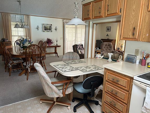 Sunlake Estates - Beautiful 55- Community on Lake Yale. This home is situated on a lovely large corner lot. The home comes beautifully furnished in every room and everything you need to move right in. You will even find dishes, pots and pans, linens and even cleaning supplies!As you enter you will find inside laundry room with plenty of storage. Very spacious living room and dining room which leads onto large enclosed lanai. Primary bedroom has ensuite bath, nicely sized second bedroom and bath in hallway. Also a Golf Cart is Included! We offer lots of amenities: Golf Course, Marina, Dog Park, 2 Pools and Fitness Center. Don't miss seeing this gem of a home, it won't last long!!