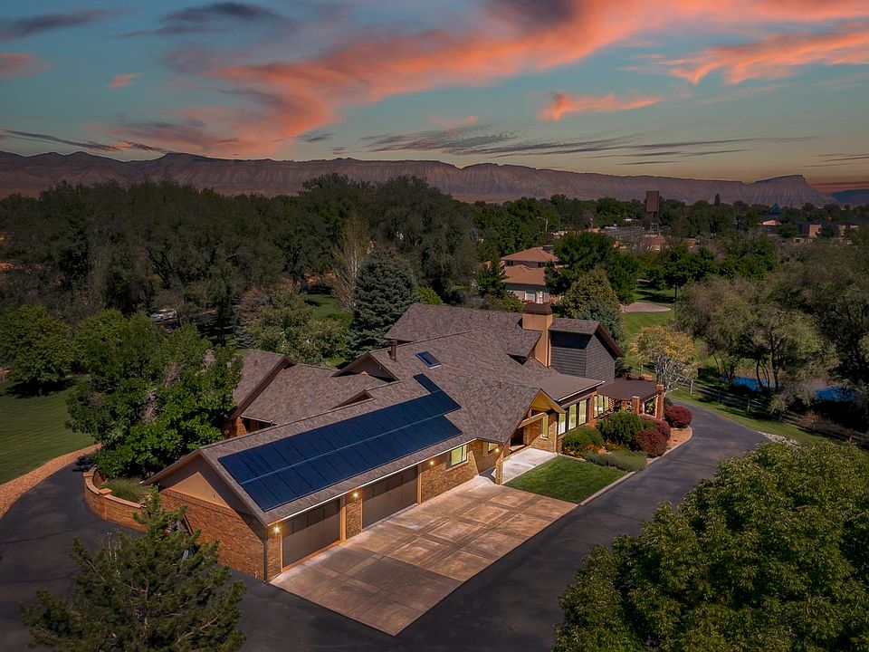 Welcome to 2625 H Road, an exquisite Grand Junction estate where history and charm seamlessly blend to craft an extraordinary home. Formerly known as the Suplizio House, this stunning property spans 4.5 acres and encompasses over 6000 square feet of living space across the main home and ADU. With a 2-car attached garage and a 2000 square foot detached temperature-controlled shop featuring an exercise room, this estate caters to both luxury and functionality. Immerse yourself in the outdoor oasis that includes a dedicated irrigation pond, custom play-set, lush landscaping, trees, and garden areas. Multiple delightful patios invite you to unwind and soak in the tranquility of your surroundings. Meticulously maintained and updated over the years, this immaculate home boasts 4 bedrooms, each with an attached ensuite. The primary bedroom showcases an impressive closet, a private fireplace, and a deck offering panoramic views of Mount Garfield and the Mesa. A dedicated office and guest bathroom are strategically placed behind the bar area and game room, fostering a perfect balance of work and play. A dual fireplace connecting the game room and living room creates warmth and unity between the spaces. The chef's kitchen, featuring a 48-inch Thermador Gas Range and Subzero Refrigerator, is a culinary haven. The downstairs theatre room with a private bathroom provides an amazing retreat for relaxation.Transitional and timeless finishes grace every corner of this home, from the imported travertine tile from Turkey to the bar top with a story originating from a bar near Wrigley Field in Chicago. Recent upgrades include a new roof and gutters for the home, shop, and ADU, along with owned solar to enhance energy efficiency. Decorative shake siding adds character, complementing the original brick and newer stucco work. Cathedral ceilings welcome you into the bright and airy spaces, enhanced by fresh paint and stained beams highlighting the home's architectural lines. New decorative lighting throughout updates the aesthetic of each living space. The addition of a mudroom off the attached garage provides extra storage and convenience, while a mini-split in the ADU ensures a comfortable space for guests or a home office. Attached to the ADU, discover a charming greenhouse with access to garden areas, completing the picture of comfortable living in a serene setting. This home is not just a residence; it's a piece of Grand Junction history, waiting for you to make it yours.