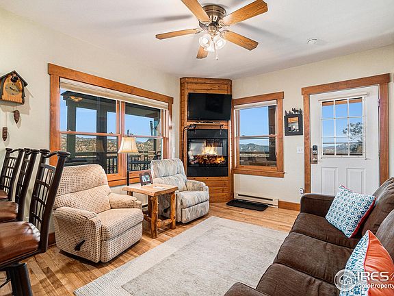 Beautiful Corner Unit with Amazing Views - Short-Term Rental Approved! This rare end unit offers a wraparound deck with incredible views of the Mummy Range, Lumpy Ridge, and Marys Lake. Fully furnished and turnkey, it's perfect as a vacation home or income-producing investment. Enjoy hardwood floors, a cozy fireplace, and a spacious master suite. The covered deck is ideal for relaxing or entertaining while taking in the scenery. Bonus 100 sq. ft. storage space included. Rental history and prime location make this a must-see in Estes Park!