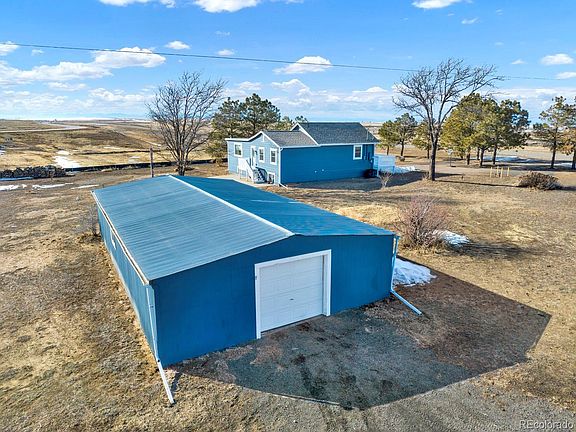 Deceptive!! You would never believe the interior of this home belongs to the exterior of this home. Large and open!! It is a 4 bedroom, 3 bath home with 2 additional bonus rooms. So, so many windows throughout for a very light and cheery feeling. There is also an unfinished area of the basement, not included in the total sqft of this home, for even more space. Seller is leaving plenty of wood for the wood burning stove in the living room. The home boasts of 3 decks so taking in the beautiful sunsets, the openness of the country or watching the activities in the back yard, you are covered. Several large boulders placed throughout the yard. To top things off? There is a 1400sqft detached garage/outbuilding. Off paved road, 20 minutes to DIA and a hop-skip-jump to all the amenities the growing Town of Bennett has to offer.
