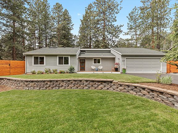 Thoughtfully upgraded Ranch style home with mid century feel and accents in sought after Valhalla Heights. Spectacular yards, front and back. Home faces East to capture incredible Bend Oregon sun. Minutes to down town, schools and dining. No HOA fees and room for toys. Upgraded kitchen, solid counter tops, high vaulted wood ceilings, cozy stone fireplace, Millguard windows, Simpson fir front door, solid core interior doors, new lighting, trim and wood flooring are just a few of upgrades. The list keeps going. 3 bedrooms, 2 baths plus attached 2 car garage.Fenced back yard is perfect for pets, entertaining, gardening and swing sets.Side yards will accommodate boats, canoes, campers and more. Lot size offers room to expand and the quiet neighborhood feels like living in a park.