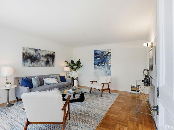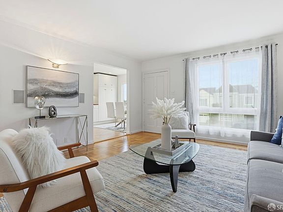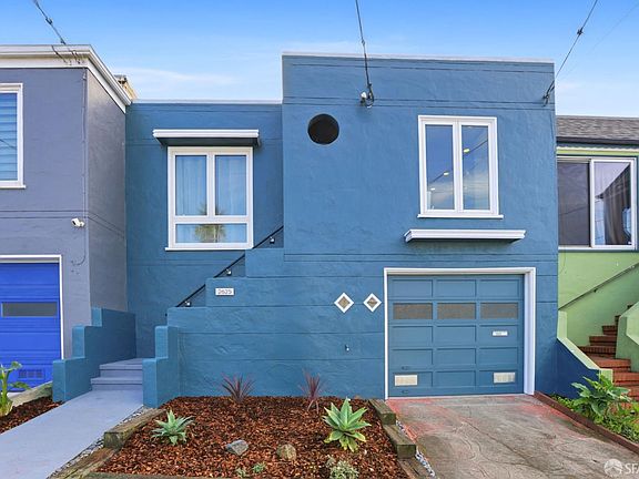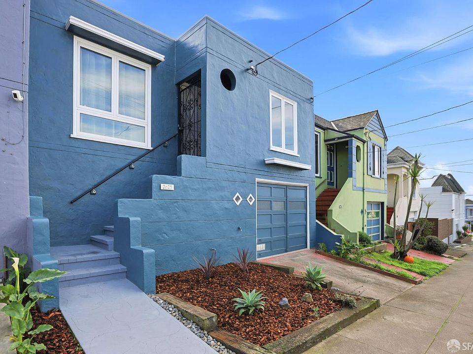 Charming Streamline Modern home in a prime Sunset location! This post-Art Deco gem offers a bright and comfortable 2-bedroom, 1-bath layout with an inviting, spacious floor plan. The living room boasts pristine wood floors and elegant crown molding, while the thoughtfully renovated eat-in kitchen features subway tile backsplash, butcher block countertops, glass-pane cabinetry, and abundant pantry-style storage perfect for the busy home chef. Two generous bedrooms sit adjacent to a beautifully updated bathroom complete with shower-over-tub, modern vanity, and a large skylight that fills the space with natural light. Downstairs, an expansive garage accommodates two cars in tandem, along with a washer/dryer area, a bonus room or den, workshop space, and additional storage. Recent upgrades include permitted seismic reinforcement, a tankless water heater, dual-pane windows, updated plumbing and electrical, Harding exterior siding, and more. Enjoy outdoor relaxation on the brick patio or host a BBQ in the low-maintenance, beach-inspired backyard. Just one block to Noriega Street shops, Ace Hardware, Safeway, multiple MUNI lines, St. Ignatius College Prep, and the lively Outer Sunset Farmers Market. A truly adorable starter home perfect for first-time buyers seeking something special!