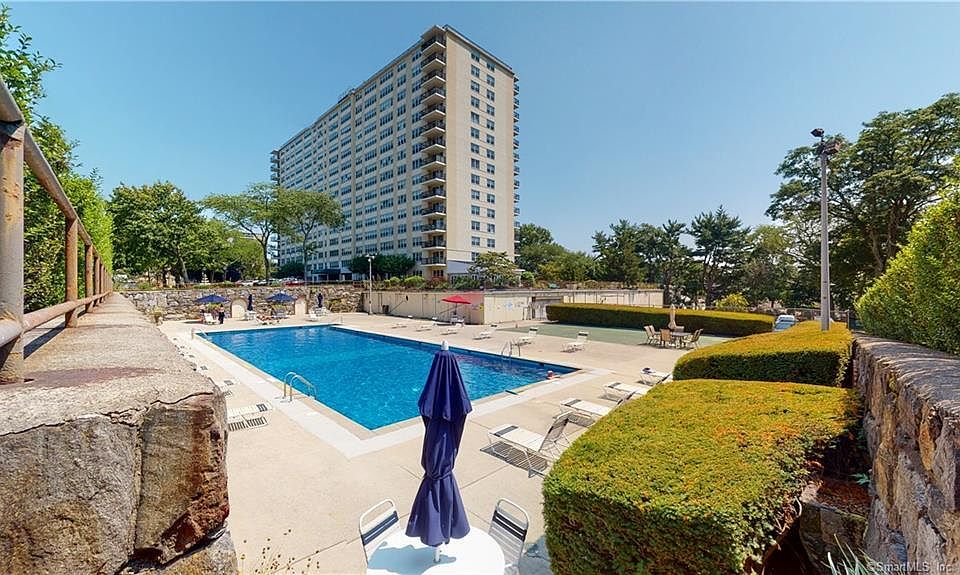 Starting out? Starting over? Downsizing? Looking for an investment? This EXTREMELY well managed building in the North End offers 24/7 security, Olympic sized heated pool, tennis courts,gym, garage parking, library and we haven't even gotten to the unit yet! This studio boasts a view of Long Island Sound, great light all day and nice space. Heat, hot water and gas are included in HOA fees. There's a 'Green room' availible for entertaining. Beautifully landscaped grounds and a park like feel offer a nice oasis. Close to I-95, Merritt, Downtown Bridgeport and Fairfield. Don't miss this opportunity to own, become a landlord or add to your investments with one of the nicest condos in town.