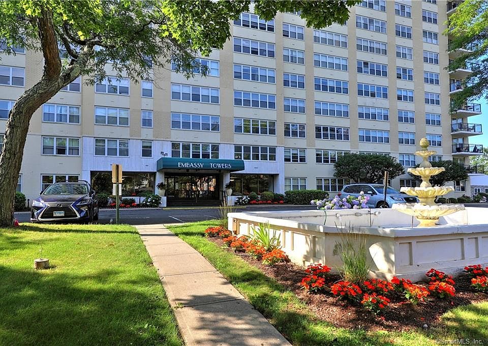 Great opportunity to own this spacious one bedroom unit in the desirable & well maintained Embassy Towers. This unit features open concept living room/dining area, kitchen, one generous sized bedroom, and full bath. There is ample closet space in the unit and an additional private storage unit in the basement. This unit is very affordable as the common charges include heat, hot water, air conditioning, and gas cooking. The building provides 24/7 front desk/security, on-site laundry, heated in-ground pool, club house, gym, tennis court, and garage parking. You can't ask for a better commuter location, located only 1/4 mile from Sacred Heart University, and 1/2 mile from 95/RT8/15. Walk to bus lines and only a short drive to the Bridgeport Train Station. Pets allowed w/restrictions. Property being sold in AS IS condition. Buyer must pay a $300.00 one time move-in fee. Agent related to seller