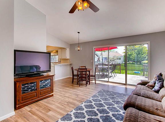Come home to this open and bight adorable ranch home. Vaulted family room with ceiling fan w/light, sliding glass doors that open to your large deck and fenced in yard for you summer entertainment! Freshly painted, new laminate wood floors, updated bathroom, new carpeting in both bedrooms, white kitchen cabinets, breakfast bar & pantry closet. Attached 2 car garage! All appliances stay, including washer & dryer. Home Warranty Included. Great location near shopping, restaurants and I-88! BONUS- Naperville School District #204.