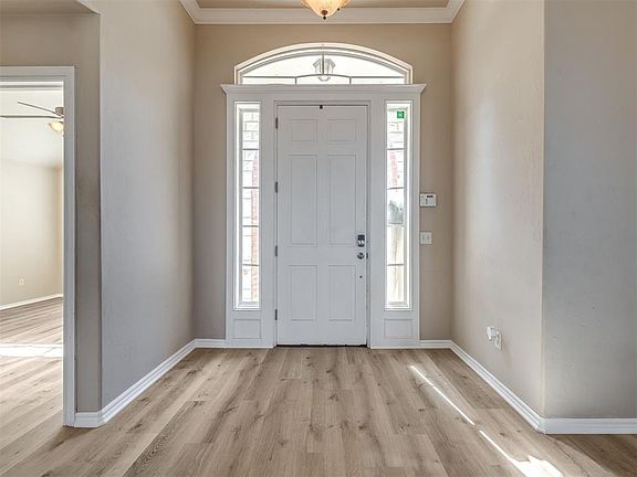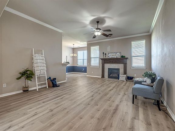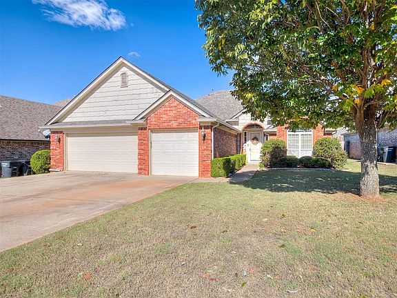 PRICED TO SELL! Move-In Ready! New roof and gutters, New Luxury Vinyl Flooring throughout the entire home and the Stainless Steel refrigerator stays. This charming home features 3 bedrooms, 2 bathrooms, STUDY and a 3-car garage in the sought after Rock Creek addition in Moore. As you step inside, you'll be greeted by an abundance of natural light highlighting the high ceilings and creating an inviting atmosphere throughout the open floor plan. The study off of the entryway offers versatility to suit various lifestyle needs. The kitchen has lots of counterspace, stained cabinets and a pantry. The living room has a vaulted ceiling, tall windows and a gorgeous gas fireplace. The primary suite has a spa-like bathroom that features a jetted tub, double vanity, and a huge walk-in closet. The secondary bedrooms are on the opposite side of the home and are equipped with huge closets. Step outside to your covered patio and fenced backyard where you can unwind or entertain guests in your private outdoor oasis. Enjoy the well-maintained neighborhood pool and playground. Plus only 15-20 minutes to TINKER and downtown OKC. Don't miss an opportunity to own a home in a prime location. Schedule your showing today!