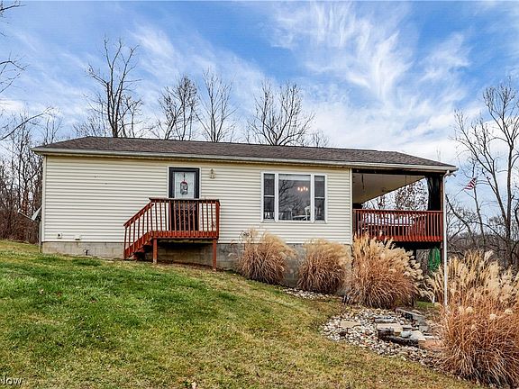 Charming & Cozy! This adorable, remodeled, raised ranch is situated on almost 10 acres with a creek along the backside of the property. Thoughtfully designed with views from every window, a large kitchen with granite countertops open to both the living room and dining room, two bedrooms, two full bathrooms, 1st floor laundry and flex space, currently used as a playroom, could make an adorable office or lounge space. Outside you'll find a spacious covered balcony with porch swing, also serving as a carport, an amish built shed, a 50 yard gun range with two lanes, trails and a creek. The amish built shed is 12X20, with two 8' lofts and is wired for electric. Updates: Water system installed, added reverse osmosis, replaced well pump, septic repaired & pumped.