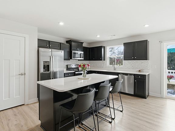 The kitchen truly shines—complete with quartz countertops, marble backsplash, stainless steel appliances, and abundant cabinetry. It’s the perfect space for cooking, gathering, and hosting with ease. The living and dining areas connect seamlessly, creating a bright, airy flow that feels both spacious and inviting.