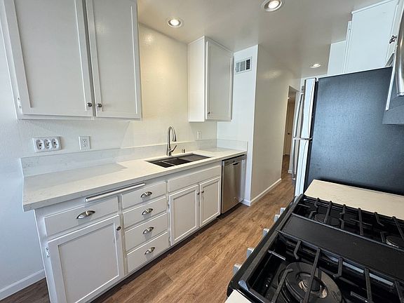 Welcome to this charming 2 bedroom, 1.5 bathroom home located in the vibrant community of Mission Viejo, CA. This home boasts a large primary bedroom with a walk-in closet, providing ample space for your belongings. The kitchen is equipped with modern stainless steel appliances, and the convenience of an in-unit washer/dryer adds to the appeal. The home features hardwood floors throughout, central A/C, and heat-forced air, ensuring your comfort in all seasons. The property also includes a 1-car garage and an additional reserved parking space, offering plenty of room for your vehicles. As a resident, you'll have access to the community playground, perfect for outdoor activities. This home is a perfect blend of comfort and convenience, waiting for you to make it your own.