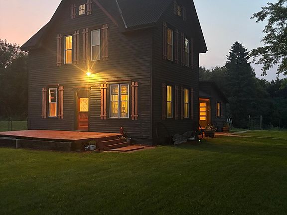 PRIVATE, RURAL, UPDATED AFFORDABLE 1890 GOTHIC VICTORIAN HOME ON 8.52 ACRES, clean and turnkey ready. Offers a rural secluded setting, yet just minutes from the public school. The property has a new septic system completed in 2024. The water well is clean and abundant. There is a newer LP furnace installed in 2022. There is new pex plumbing throughout the home. The electricity has been updated inside & out. The windows were updated with aluminum frame and tip inward for easy cleaning. It has a newer water heater. There is a woodburning stove for secondary heat if a buyer choses to use. The exterior was recently painting, complimented with handcrafted cedar shutters. New vintage style light fixtures were installed throughout the home. There is a baker’s kitchen with ample cabinets. There are original hardwood floors & woodwork throughout most of the home. The appliances are less than 2 years old. There is a nearby waterfowl reserve, and the property is just minutes away from fishing, hunting, and endless water recreation. There are 2 nearly new quality built outbuildings: a 10X12 storage building and a 12X16 custom designed mini livestock building. There is a new fenced in rotational pasture. There is a Bee Pollinator Plot for you to harvest your own honey. The driveway was resurfaced with gravel 2025. Property was recently surveyed and corner boundaries are marked. The septic system cost was added as a loan assessment to the property taxes. The loan balance may be paid off by seller at closing with a full price offer. Call for a showing today!