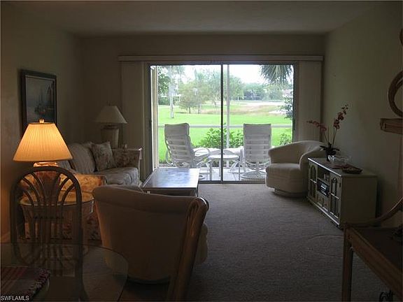 Location, Location! This rare find is in a very convenient location and is only a few miles from down town 5th ave, the beach, Naples Bay and I 75. This 2 bedroom/ 2 bathroom, 911 sq ft condo unit with a screened in lanai is in the popular pet friendly location of Greenwood Village at Kings Lake Community. Detached carport parking is directly outside the front door, so shopping at nearby Kings Lake Shopping Center and Coastland Center Mall will never be a problem if you have tons of bags! This unit is being sold partially furnished and has an open floor plan with generous sized rooms and gorgeous views of a 30 acre lake including beautiful landscaping and a sidewalk. Hurry, this unit will not last long!