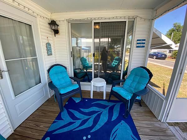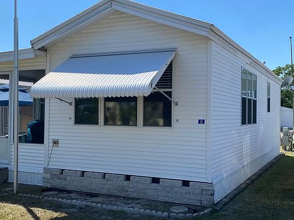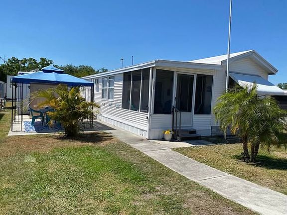 Very spacious park model. Fully renovated and furnished. New central air/heating system under warranty until 2035. Open air kitchen. Dining and living room with tv. Large pantry for dry food storage. Bedroom with queen sized bed that has adequate storage and a 2nd tv. Large laundry room with extra storage. Cozy Florida room with screens. Possibility of a 2nd bedroom in the lanai and a 2nd bathroom in the laundry. New rubber roof and appliances in 2022. Ready to move in and can become your permanent home.