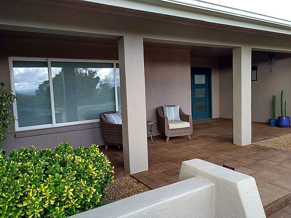 Separate entryLouvered coverMingus mountain viewsContemporary aestheticRed rocks of sedonaGlass tile poolLarge covered front patio
