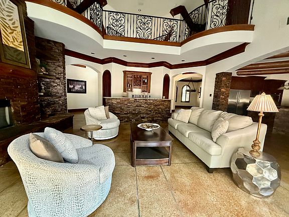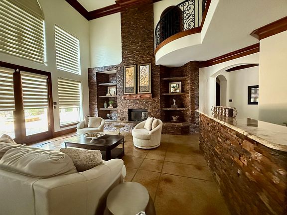 Lagoon poolStacked stone fireplaceStone mantled fireplaceExercise roomOctagonal covered gazeboGranite countersStone steps