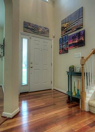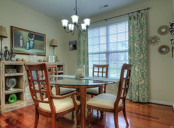 From the moment you enter this well maintained 6 bedroom beauty, you will know you've found your New Home! The impeccably clean and striking Brazilian cherry hardwoods throughout most of the first level welcome you into an open, yet comfortable and flowing floor plan. Curved archways frame the dining room, and set the tone for the uniqueness of this home. The Great Room is not just inviting, but spacious, and comfortable with the huge windows overlooking the outdoor space, the gas fireplace and the ease to entertain all your guests right into the eat in area, or breakfast bar connecting to the open kitchen, which offers Corian countertops, Under cabinet lighting, Gas stove, Pantry & Recessed lights. From the eat in area is the incredible 12'x32' covered porch overlooking the 1/3 acre fenced yard. First level bedroom w/full bath could also be a convenient home office. Upstairs you'll find the large Master bedroom complete w/walk in closet and private spa like bath. Add'l 4 bedrooms upstairs, each with ceiling fans, chair rail accents, and nice closets with organizers for additional storage. Watermill includes Clubhouse w/pool, tennis courts & walking trails throughout the community!