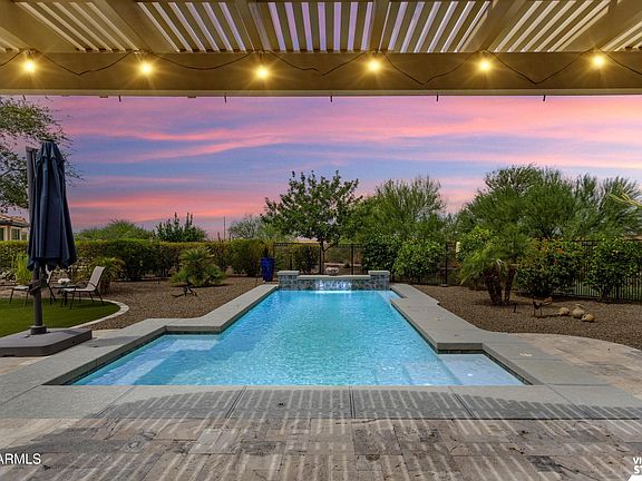 Saltwater poolExtended travertine patioFenced yardCharming courtyardWooden shuttersLarge walk-in closetGranite counters