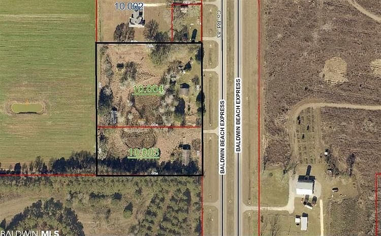 Fantastic development opportunity. 6 acres on the Baldwin Beach Express, 2 minutes from I-10, 3 minutes from Highway 90. 550 feet frontage on the Beach Express, with two entrances in place. All buildings on the property sold "as is-where is". Property is mostly open, but several old oaks to provide shade and beauty to the land.