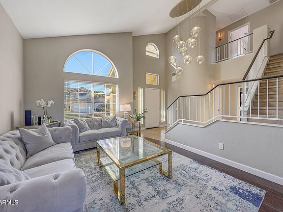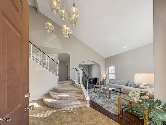 Set on a large premium lot in Tatum Highlands, this home offers mountain and desert views with high ceilings that greet you at the entry and extend through the spacious living room. Featuring 4 bedrooms and 3 full baths—including a convenient main-floor bedroom and bath—this layout is ideal for flexible living. The upstairs master suite provides a private balcony, dual walk-in closets, and bath with separate tub and shower. The kitchen, complete with an island and breakfast bar, opens to a beautiful backyard oasis with a sparkling pool. Located close to Desert Ridge dining, major freeways, and scenic trails—don't miss the chance to explore this desert retreat!