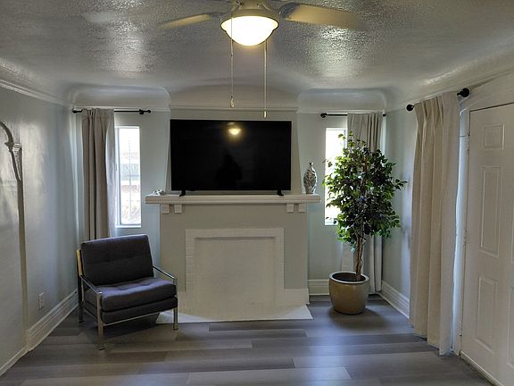 Unit is in a side by side duplex with private entrances. It's a 2 bedroom 1 bath that offers 1,100 square feet of space. It has a living room with fireplace mantel, a dining room, kitchen, owner provided washer + dryer in separate laundry room, 2 bedrooms, full bathroom with shower/tub enclosure, 6 closets 3 are walk-in size.