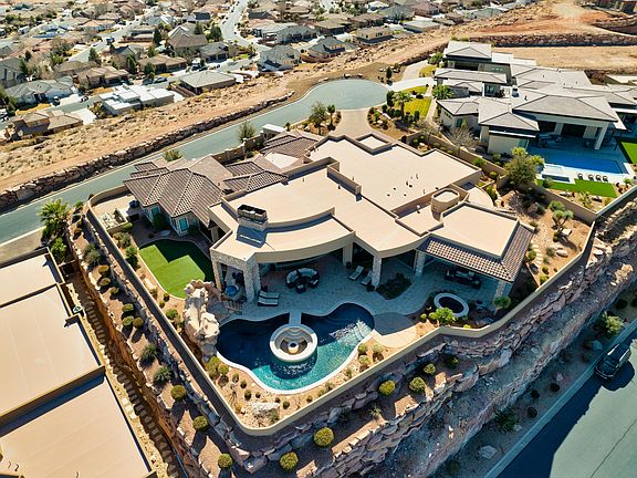 ''Stunning'' describes this former St. George Parade home. Expansive views, & hand crafted detail make it perfect for private family events or grand entertaining. Professionally decorated, & fully furnished. The floorplan features large public & seperate private spaces. A seculded study included in the primary suite provides an additional retreat while the large great room, family room w/ state of the art theater are perfect for creating lasting memories with family & friends. Atached casita insures privacy for guests. Multiple walls of retractable glass doors seamlessly transition to a resort style marble pool deck complete w/ water slide, spa, island conversation pit w/ fire feature, splash pad, & outdoor kitchen grill & pizza oven. Please see documents section for a list of features.