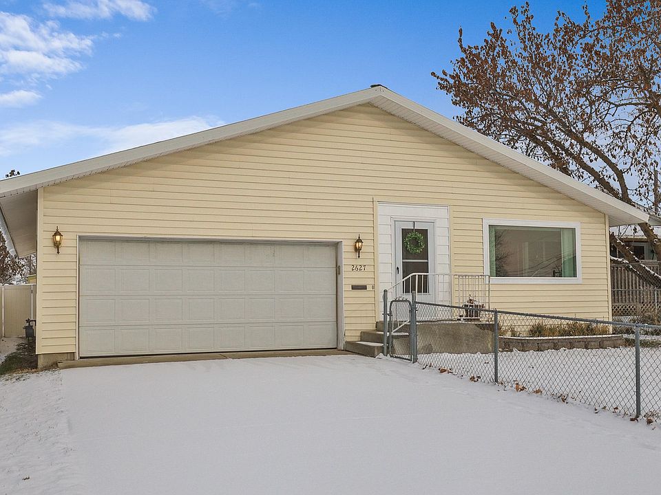 Super spacious rancher is across the street from Regal Elementary School and just a couple of blocks to Shaw Middle School. You will love the the light and bright open floor plan with great room including living and dining area and huge kitchen with island with breakfast bar, gas 5-burner stove, and tons of counter space and cabinets. The current owner used the front room as a dining room. All appliances including washer & dryer stay with this home. The bonus living area at the back of the house features a gas stove, solar powered auto shaded skylight, and door to the back patio. The primary bedroom is oversized with a tray ceiling, walk-in closet and full bath. The second bathroom has the largest vanity I have ever seen! Tons of room to expand in the lower level for additional living space. Super low maintenance with vinyl siding and a metal roof and new furnace in 2019. Charming fenced backyard with covered patio and raised garden bed. Seller is offering a $5,000 flooring or closing cost allowance!