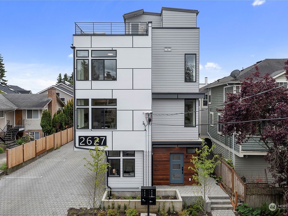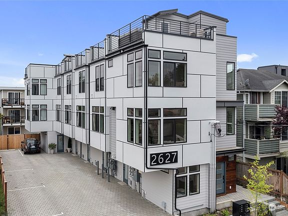 Exquisite sought after FRONT FACING CORNER home in the heart of Ballard is a masterpiece of sustainable design. Abundant natural light floods the interior boasting a chef's kitchen equipped w/a gas stove, SS appliances & bespoke cabinetry. Top-level primary suite offers a lavish spa bath & generous closet space, while the lower-level 2nd bedroom features an en-suite bath. Rooftop deck w/views & convenient gas, water, & elect. connections plus bonus storage closet! Enjoy the best of Ballard living w/a Walk Score of 94, close to bustling eateries, boutiques, the Locks, lush parks & the unique charm of Ballard. 4-Star Built Green!