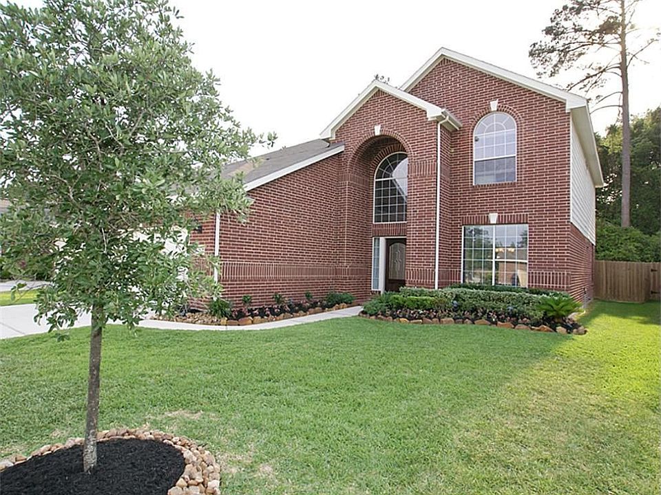 Listing agent: Jerry Smith, Call 281-799-8143 for information. ''The Travis'' floor plan in this Lennar built two story home backing to a greenbelt. The home features four bedrooms, three and a half baths and two car garage. The master suite is down, master bath with separate shower, whirlpool tub and double vanity sinks, game room up. This home has Cordovan Maple Cabinets, upgraded Corian countertops, Chicory Cream Melange upgraded carpet, Adobe Wash Acme Brick-Cherry Hill. Beautiful custom paint on the walls. Blinds throughout the home. Easy access to I45.