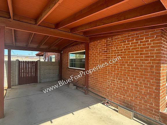Welcome to this charming 3-bedroom, 2-bathroom brick home! Step into a spacious and bright living room featuring a cozy fireplace. The well-equipped kitchen includes a stove, refrigerator, dishwasher, and ample cabinet space. Adjacent to the kitchen, you'll find a dedicated dining area and a laundry closet with a washer and dryer as-is. The primary bedroom offers its own private bathroom with a standing shower. Two additional bedrooms are generously sized. Enjoy the large backyard complete with a covered patio, perfect for outdoor gatherings, BBQs, or simply unwinding. A single carport is included, and the home is conveniently located near local amenities, shopping, and more. Do not miss out on this lovely home!