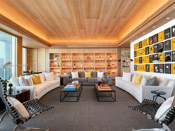 Soaring above Coconut Grove, this 11,810 SF penthouse at Grovenor House embodies the pinnacle of modern luxury. A private rooftop pool crowns this 5-bedroom, 5.2-bath residence, offering stunning 360° views of Biscayne Bay and the glittering Miami skyline. Designed for both elegance and ease, the home features tray ceilings, custom millwork, rich hardwood and black chalk marble floors, a 300+ bottle wine cellar, and a bespoke gourmet kitchen. Walls of glass open to a wraparound terrace, blurring the line between indoors and out. With a private elevator, rooftop summer kitchen with food lift, automated shades, and integrated smart home technology, this is elevated living at its finest.