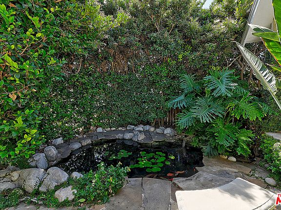 Private oasisGorgeous fish pondBright natural lightSequestered behind lush landscape