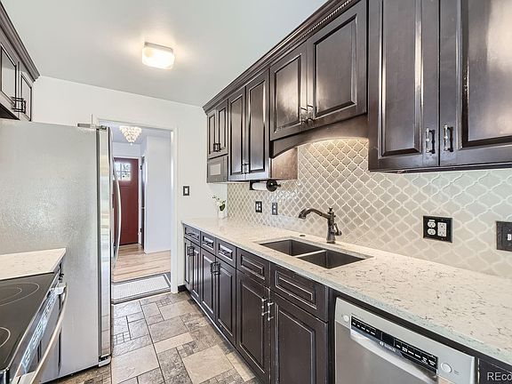 Step outside to your private backyard sanctuary. Surrounded by lush landscaping and colorful perennials, this peaceful haven is perfect for enjoying Colorado’s beautiful weather. Two extended covered patios provide ample space for outdoor dining, BBQs, or simply unwinding after a long day. The RV parking area next to the garage is ideal for storing a boat, trailer, or extra vehicle.