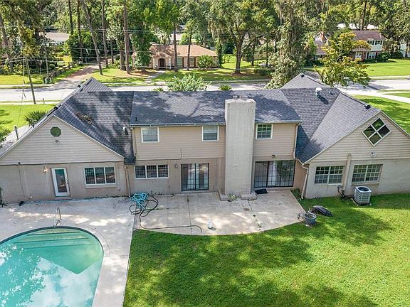 Location, location on this huge 4-bedroom 4 bath pool home in sought after SE Ocala. This home is a bike ride away from the Ocala Downtown Square with lots of dining and entertaining spots. Step inside to this wonderful built home like no others today. You have a beautiful formal living room and formal dining room with coffered ceilings (very ornate). Recent upgrades include new roof (2022), New AC (2024), pool converted to salt system (2023), new Shower replacement Guest bath. The home has a large backyard backing up to a preserve for privacy, NO HOA! The home has so much to offer, 2 Fireplaces, one in Primary and one in family room, beautiful stained glass window overlooking pool, and lots of built in shelving. The kitchen has double ovens, gas cooktop and an amazing newer refrigerator! Bring your vision and personal touches to make this your forever home!