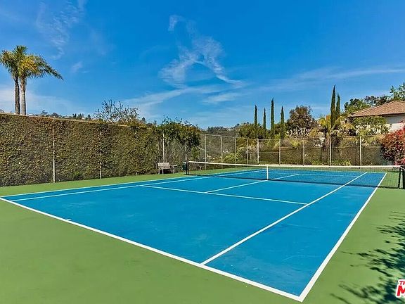 4,000 SF home is the perfect family retreat, offering 4 bedrooms plus a library/den office with an ideal layout and thoughtful finishes. Set within a secure gated community just minutes from Sunset Blvd off Benedict Canyon, the property combines privacy, tranquility, and functionality. High ceilings welcome you into the living room, with new hardwood and tile flooring carrying throughout the house. An oversized primary suite and an additional en-suite master anchor the upstairs level, alongside two perfectly apportioned bedrooms. East-facing exposure fills the interiors with natural light from sunrise to sunset.Outdoors, the home feels like Tuscany, with insane mountain views, a romantic garden, hillside pathway, fruit trees, and a large swimming pool surrounded by tranquil greenery. The property includes a 3-car garage, laundry room, and access to two community tennis courts. Fireplaces are decorative only.