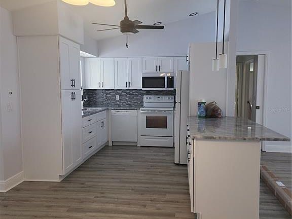 Beautiful 3-bedroom 2 bath Duplex with private pool in the desirable development of Deep Creek, features include split floor plan, all new kitchen cabinets, all new wood look vinyl flooring throughout, large spacious living room, large dining and breakfast bar. Spacious master bed with ample closet space and large master bath, two additional bedroom and spare bath with access to pool area. great lanai with built in pool, laundry facility in garage. Beautifully manicured large yard on corner lot with fenced in area. Pool and lawn care included. Close to stores, I, 75, restaurants and more.