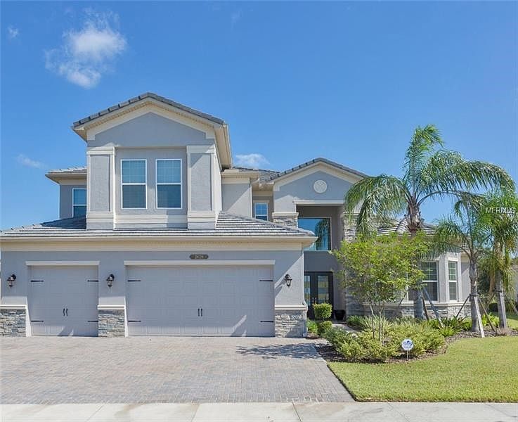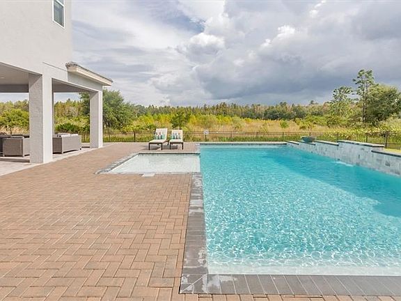 Luxurious pool home with stunning modern finishes and superior construction. The "Bassano" floorplan shows like a model and is truly one of a kind in this resort style, maintenance free, luxury home community of The Ridge At Wiregrass Ranch in Wesley Chapel FL. The home is situated on a conservation home-site with no back neighbors, and boasts over 5,000 sq. ft. of living space. Featuring 5 bedrooms, 7 full and one half bathrooms, a large first floor media room, second floor bonus loft area and a study, allowing space and privacy for any lifestyle. Downstairs are two spacious bedrooms, one with an En Suite bathroom, perfect for guests. Upstairs is an amazing oversized master suite with a sitting area and TWO MASTER BATHROOMS! Each of the other two upstairs bedrooms also have their own bathrooms. The two story dramatic ceilings in the foyer and formal living room gives this incredible home the "WOW" factor. Perfect for entertaining, a wet bar is conveniently located between the living and dining room. Amenities in this guard gated community include a 12,000 sq. ft. clubhouse with lounge, bar area and movie theater, indoor sports complex, fully-equipped fitness center, yoga/fitness studio, water slide, Har -Tru lighted tennis courts, basketball, and beach volleyball courts, in addition to 3 pools. With close proximity to shopping, restaurants, medical, top rated schools, and major highways, this house is a must see for anyone looking for space, luxury, and lifestyle. Call today for your private showing.
