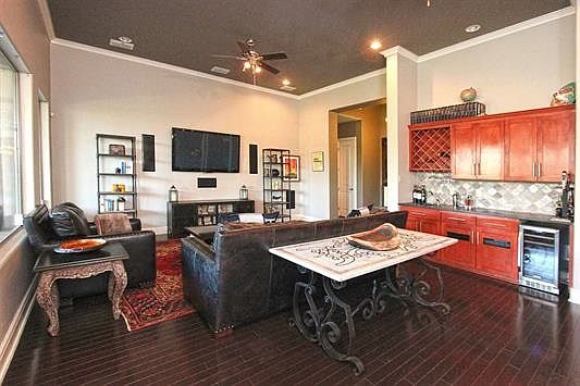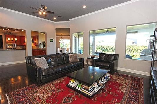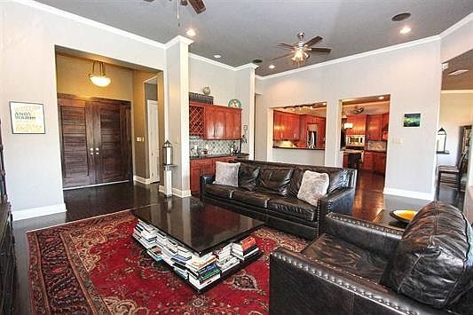Beautiful custom home located in desirable Plantation Reserve! Tall double door entrance, open concept, high ceilings, large windows and wood floors throughout. Chef's kitchen with stainless steel appliances, gas cook top, island, plenty of cabinets and counter space. Covered patio with built in gas grill and counter space for entertaining. Surround sound in main living area and patio. Front and backyard are fully landscaped with mature trees. Move in ready!