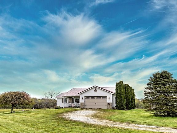 Spectacular country views and plenty of wildlife is what you will see while relaxing on the front covered porch or in the open airy living room of this beautiful country home. First floor has double master suites. Walk out lower level includes 2 more bedrooms and family room with pellet stove. Quiet country living at its finest, all on over 3 acres!