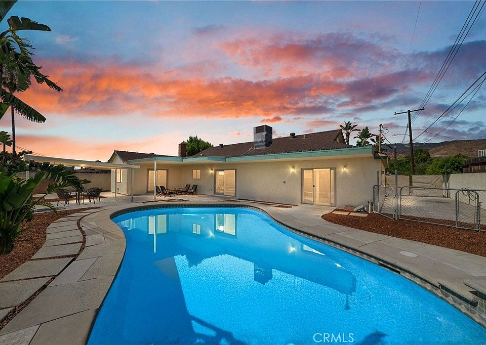 Single story, turnkey Highland pool home with an attached two car garage and gated RV parking! Located just minutes from Yaamava and the 210, this classic ranch is on a nice street in a great commuter location. You're greeted by a drought resistant front yard with new landscaping. Enter the home through the front door, or directly from the attached garage with a brand new door. The kitchen, with white cabinets and stainless appliances, is adjacent to a family room that opens up directly to the back yard via a sliding glass door. A sizable covered patio provides a great space for your summer pool parties, and there is an additional covered seating area as well. Heading back through a second slider, you'll find a family room currently staged for dining off of the formal living room with a fireplace. These living areas are opposite the four bedrooms, which is great for entertaining. The primary bedroom has a bathroom with walk in shower and a brand new vanity. It also features direct yard access. The walled yard feels very private, and the RV parking space is behind a chainlink fence for added security. This home also features upgraded dual pane windows throughout and central AC.