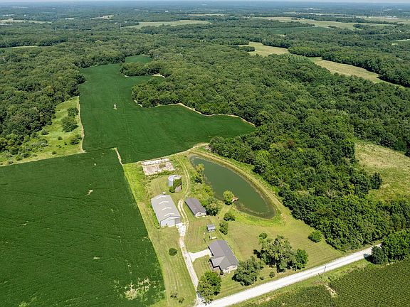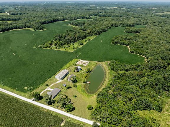 Here is a turnkey hunting farm ready for you this fall. To begin with, the farm features a 3 bed, 1 bath ranch style house with full basement that was recently totally remodeled. House features a main level totally furnished. Kitchen is eat-in with stainless steel appliances plus nice dining room table to convey. Full basement has a set of bunk beds plus additional bed with egress window, laundry with washer/dryer and mop sink. There is a wood burning furnace not currently in use. Also the home has a one car garage and covered 11x16 front porch. Outside you will have a 40x80 machine shed for all your storage needs plus a 22 x 56 block building with concrete floor. This building features top notch fish and deer processing stations. The farm itself features excellent hunting with a2 tower and 7 ladder stands conveying and nice stocked pond behind the house with a dock. Last but not least the farm has $4,000/yr income produced by the tillable acres which boasts a 112.7 PI rating. No zoning.