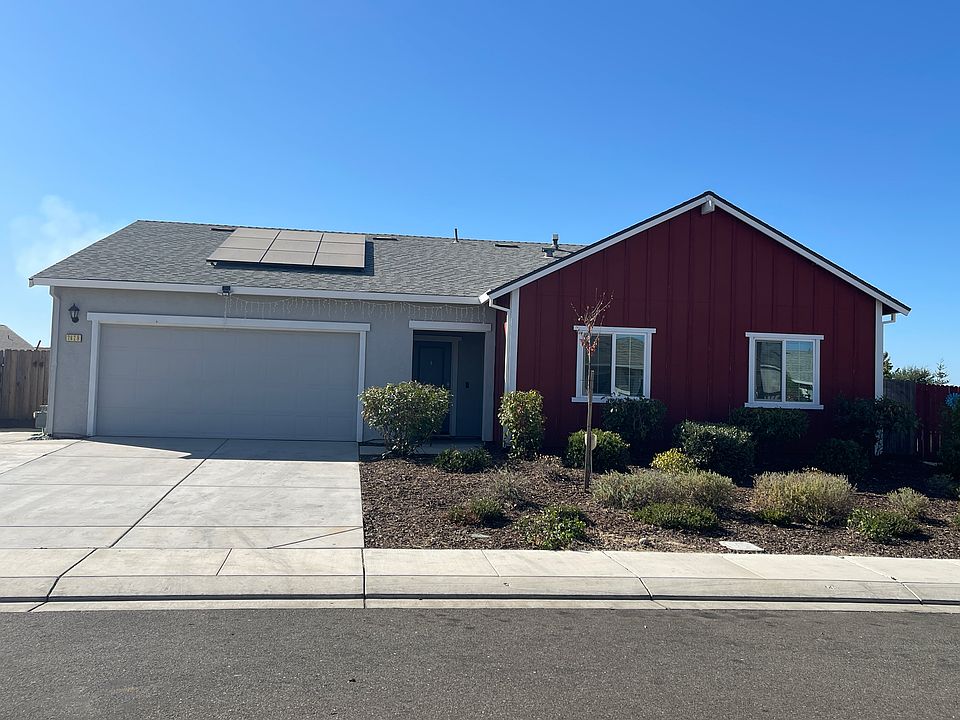 3 beds/2 baths, 1845 sf living space, single-story house, built in 2018. Located at 2629 Adams Ln, Manteca, CA 95337, a newer house district, next to the park and near Highway 120.