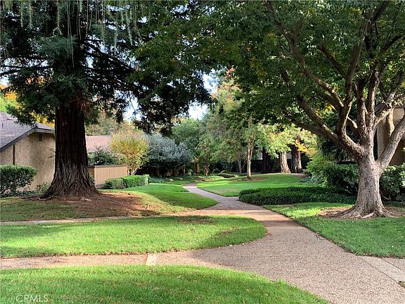 Wonderful, quiet Chico location in the lovely Woodcrest complex, where you’re surrounded by mature, lush landscaping and beautiful redwoods. This charming condo offers 3 spacious bedrooms and 2.5 bathrooms, along with a welcoming layout that feels warm and inviting from the moment you step inside. The living room features high ceilings and a gorgeous brick fireplace that truly anchors the space. The kitchen is adorable and perfect for entertaining, offering a cozy dining nook plus an additional room that connects to the kitchen—ideal as a formal dining room, office, or comfortable sitting area. Upstairs are two generous guest bedrooms and a guest bathroom with new flooring. The large primary suite features a dual-sink vanity, lots closet space, and new flooring as well. One of the best highlights is the incredible, oversized fully gated and covered patio—your own private retreat. Relax in the hot tub or unwind while enjoying the peaceful, beautifully landscaped surroundings. Additional features include a two-car attached garage and access to the community pool, perfect for cooling off during Chico’s hot summers. Close to shopping and everyday conveniences, this condo is ready to become a beautiful place to call home!