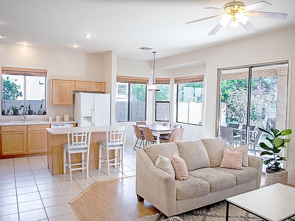 This 3 bed/ 2 bath home with golf course views is located in the highly desirable gated community of Fairways at the Legacy in South Mountain. With over 1600 square feet, this perfect sized home boasts tall ceilings, two separate living spaces, open-plan kitchen, living and dining room plus a large kitchen island. Spacious master suite leads to a large master bathroom with dual sinks, separate tub and shower, and large walk-in closet. Relax on the large covered patio with views of the 8th fairway and South Mountain in the near distance. This home feels like an oasis away from it all but still ideally located within minutes of stores, restaurants, and freeways, and only 20 minutes to downtown Phoenix and less than 15 minutes from Sky Harbor International Airport.