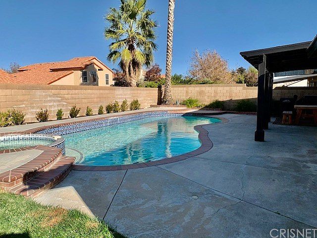 Location, location West Palmdale Pool home in the Heart of Rancho Vista. This home features 4 bedroom , 2 updated bathrooms; fireplace.; beautiful Kitchen that opens to the Family Room with a Fireplace, 3 car garage. Amazing backyard with a Pool & jacuzzi , and a lot of room for entertainment , . Close to Antelope Valley Mall, Marie Kerr Park easy access to 14 freeway, and near schools. No HOA Fees!