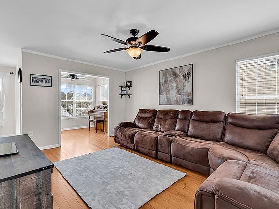 Cozy front porchStylish new backsplashCozy firepitTree-lined perimeterImpressive vaulted ceilingCarolina roomLarge fenced backyard