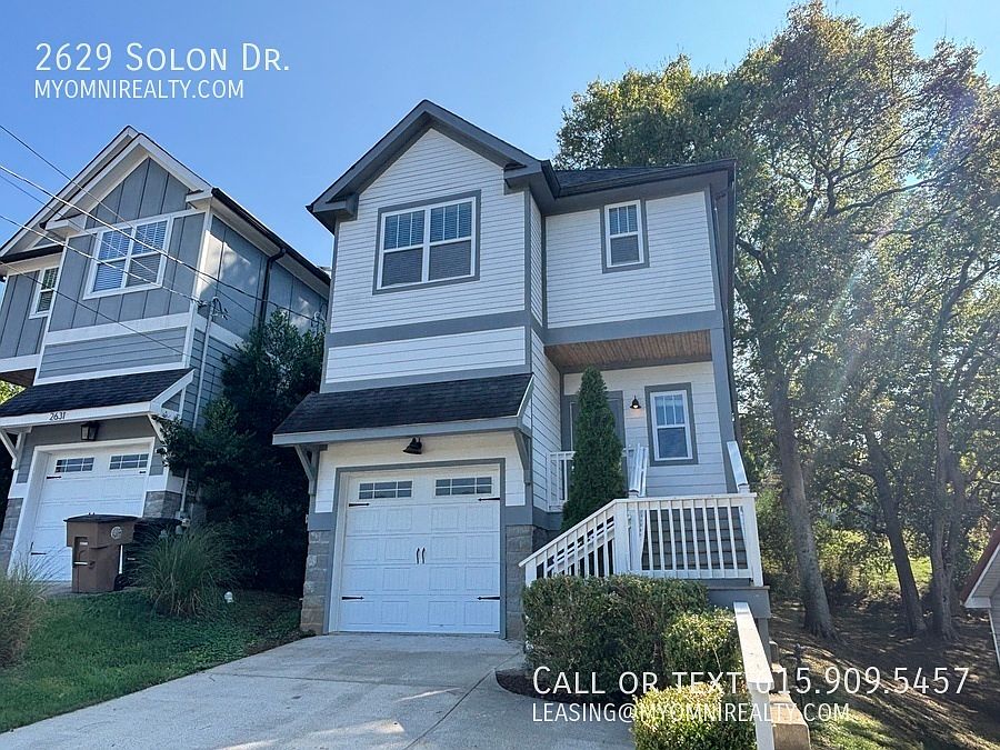 East Nashville home with 1 car garage! Open floor plan- large living room fully open to kitchen with stainless steel appliances, marble countertops, glass tile backsplash, island, gas range, and PLENTY of cabinet space. 2 covered decks- one in the master suite with soaring ceilings, large built-in closet, soaking tub, standing tile shower, and dual vanities. All bedrooms are large! Utility room with washer/dryer connections.