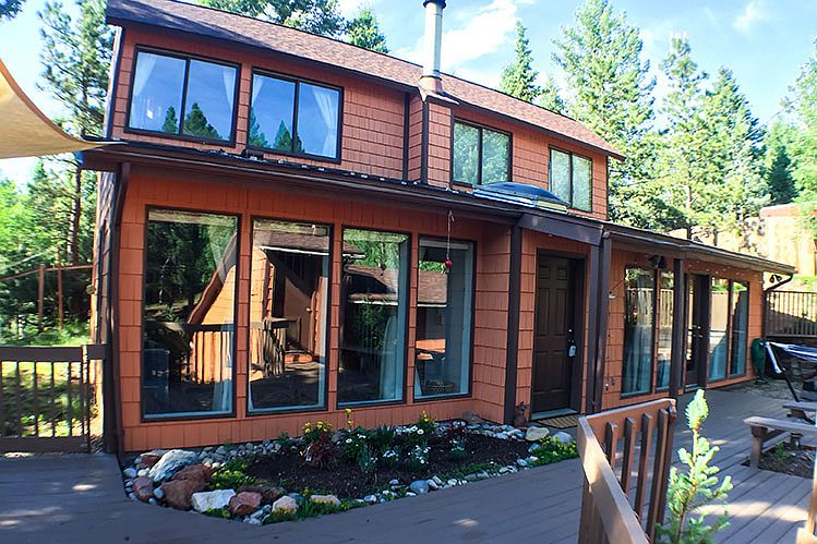 Enjoy your own piece of paradise in this one-of-a-kind charmer in the City Above the Clouds! Situated on a private mature-treed lot this home has so much to offer both inside and out! A huge wood deck at the front of the home provides plenty of space to enjoy the Colorado outdoors with family and friends! Cute country-industrial design adds so much character to this home! Enter the home into the foyer and find a fun drop zone with seating, shelving and coat hooks to place all your belongings! There is also a skylight that floods the area with natural light! Unique glazed concrete flooring flows throughout the living room and kitchen areas. The living room has vaulted ceilings, a wall of windows overlooking the deck and a wall with built-in shelving to display all your treasures! The stunning updated kitchen features granite countertops, a breakfast bar with seating, stainless steel appliances, beautiful hickory cabinets and even a pantry for additional storage. The adjacent dining area is so spacious and has a wood burning stove to enjoy and has a walk-out to the deck making it ideal for hosting outdoor get-togethers! The master suite on the upper level is fit for a King and Queen with a large sitting area/office/flex space, a private bedroom and a full bathroom with double vanities and a walk-in closet! Bedrooms 2 and 3 are on the main level and have a full bathroom conveniently located between them. A large laundry room is also on this level. The property is fenced making it great for the furry ones! A 2-car over-sized garage is located just steps from your front door! Passive solar heating and the wood stove help keep you cozy on chilly evenings and ceiling fans to keep you cool during the summer months! Come fall in love today!