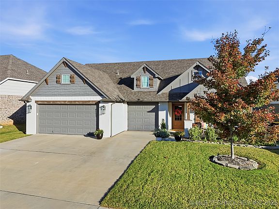 Welcome home to Breitling Village! Located in the sought-after Jenks School District, this beautifully maintained single-story home offers 4 bedrooms, 2 bathrooms, and 1,873 sqft (per tax records). The versatile layout includes a flexible 4th bedroom that can easily serve as a home office, playroom or workout space. The 3-car garage provides plenty of room for vehicles, storage or a home gym setup. Inside, you’ll find a vaulted-ceiling living room, a built-in drop zone conveniently located by the garage and front entry and a spacious walk-in pantry. The primary suite features an upgraded layout with a large walk-in shower, double sinks and a private water closet. Additional upgrades include a sprinkler system, kitchen cabinets to the ceiling and a hot water tank (~4 years old). All other major mechanicals (including the roof) are only 5 years old. Neighborhood amenities include walking trails, a park, and a swimming pool, with easy access to Highway 75, shopping, & restaurants.