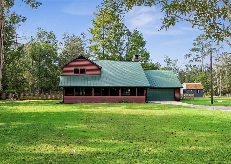 Welcome to your private retreat on 1.48 acres, just 8 minutes from Mandeville! This charming 3-bedroom, 2-bathroom home has been meticulously updated in 2024 with a new metal roof, fresh interior and exterior paint, and updated gas lines throughout. Inside, you'll find granite countertops, custom cabinetry, and a stunning stone fireplace. The home features 24 new Anderson windows with custom blinds in the living and dining areas, plus convenient hall closet laundry and walk-in attic storage upstairs.