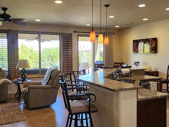 This Beautiful 3 bedroom, 2 bath home located in a 55+ community is waiting for you to come enjoy the wonderful state of AZ!. The homes features an open concept. Large kitchen with granite countertops and everything you need for your stay opens to the relaxing living room area. Spilt owners suite with king bed. Owner suite bathroom with dual sinks and walk in shower and walk in closet. Two other bedrooms One has desk and built in cabinet bed. Relax in the beautiful backyard with your own lemon tree and BBQ. Come experience resort style living with two community pools, workout facility, pickleball, gold course, restaurant and so much more! Not to mention the sunsets. Some of the best around! Summer/Early Fall rate is $1500 per month. Nov-Dec $2000 per month and Jan-April $3500 per month